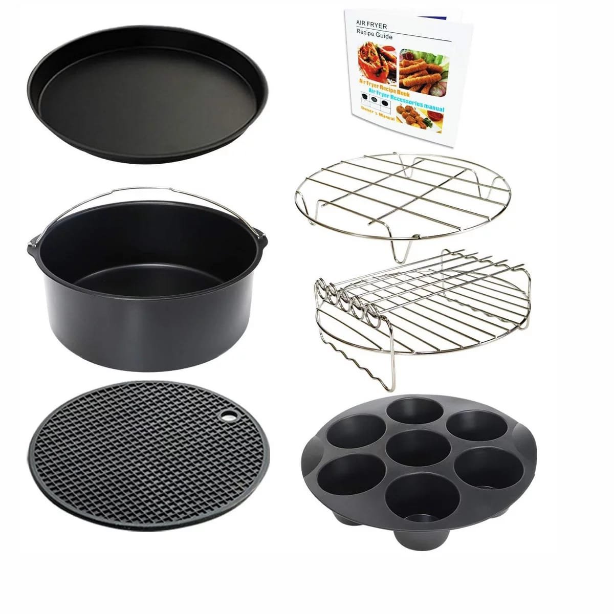 Itopfox 9 Inch Air Fryer Accessories Set with Cupcake Pan, Pizza Pan, Silicone Baking Cup, Recipe Cookbook for 5.3Qt - 6.8Qt Air FryersItopfox 9 Inch Air Fryer Accessories Set with Cupcake Pan, Pizza Pan, Silicone Baking Cup, Recipe Cookbook for 5.3Qt – 6.8Qt Air Fryers