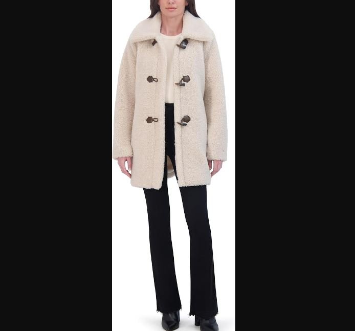 Laundry by Shelli Segal Women’s Faux Sherpa Jacket– Winter Coat With Oversized Collar, Faux Horn Toggles